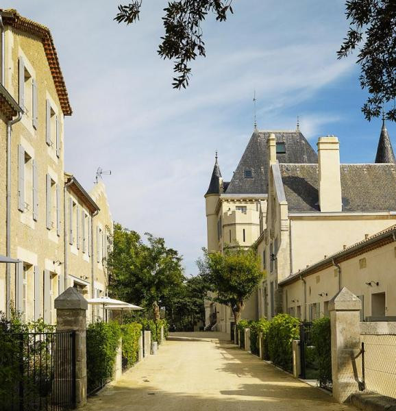 Bâtis en 1886 par l’architecte bordelais Louis Garros sur les ruines d’un relais pour les pèlerins sur le chemin de Saint-Jacques-de-Compostelle, le château Les Carrasses et ses dépendances composent l’ancien domaine viticole de la Bastide Neuve. Outre les caves, on y trouvait la maison du régisseur du domaine, des écuries ainsi qu’une forge et la maison du maréchal-ferrant installé sur place, un pigeonnier, une étable, des greniers et des caveaux.