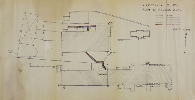 ADH, 1 J 1582/9 : Château des Carrasses à Quarante, plan du réseau d'eau [années 1940-1950]